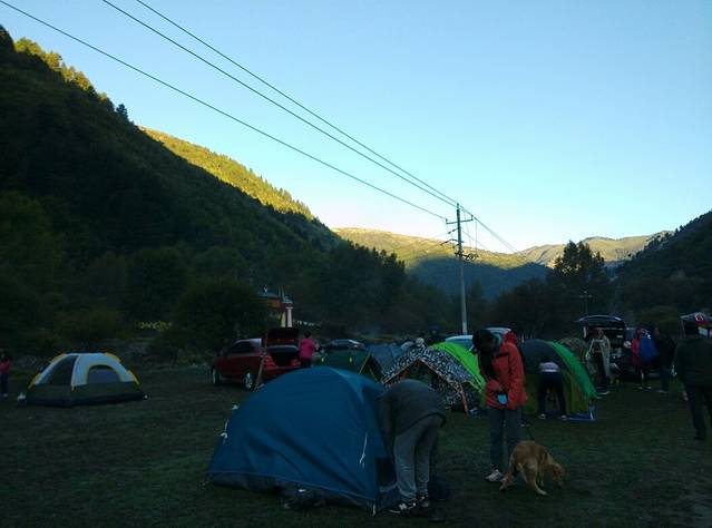 驶离扎尕那10来分钟,找到露营地。很多车辆都在这里露营。这里收费30元一顶帐篷。