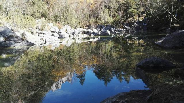 这就是仙女湖。蓝天倒影在湖面上。