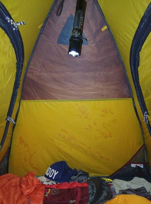 帐篷上都是霜。昨晚的温度都是零下几度。