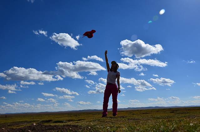 此时不是观赏花湖的季节,但天气非常不错,我们在草原上也耍得很开心。