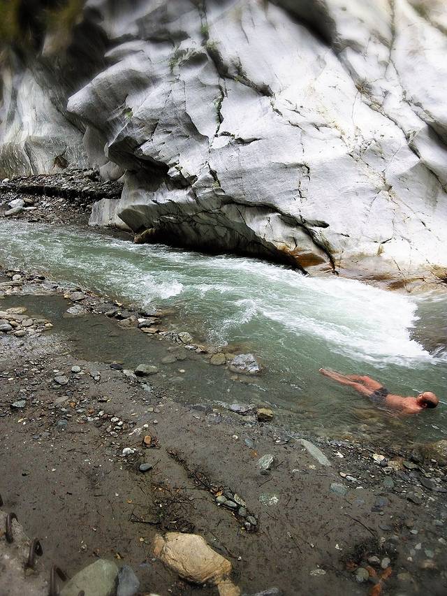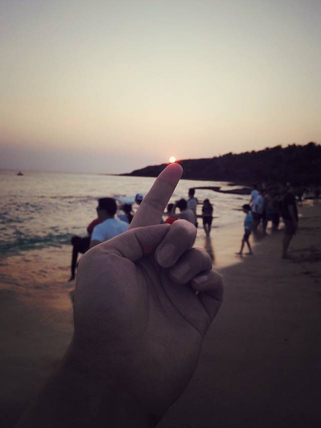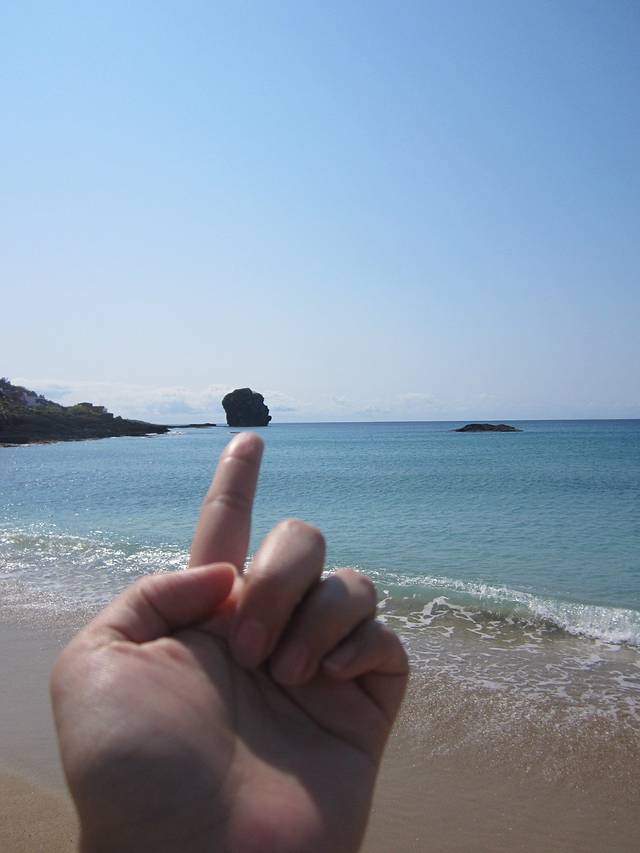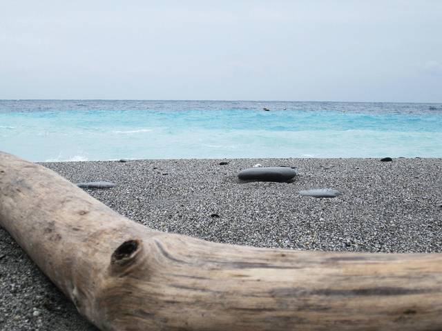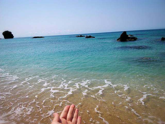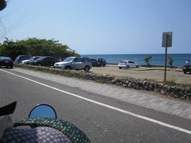 夕阳西下,我们听到了大海的声音和大家欢快的叫声,转头朝右望去,看见一片祥和的港湾。找到地图一瞧,原来我们已经骑到了南湾。想想这里离垦丁已经不远,回去也不用那么赶时间,我们决定再次下海玩耍,便停下了车。