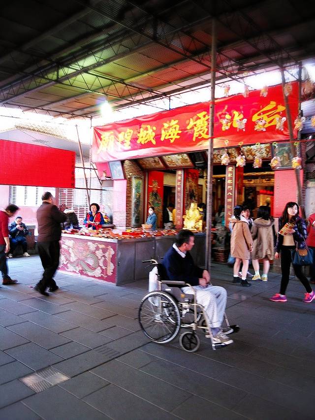吃完后在无人街道又开心地拍了几张,我们便到了著名的台北霞海城隍庙,据说这里挺有名,才会想到来这里拜一拜。