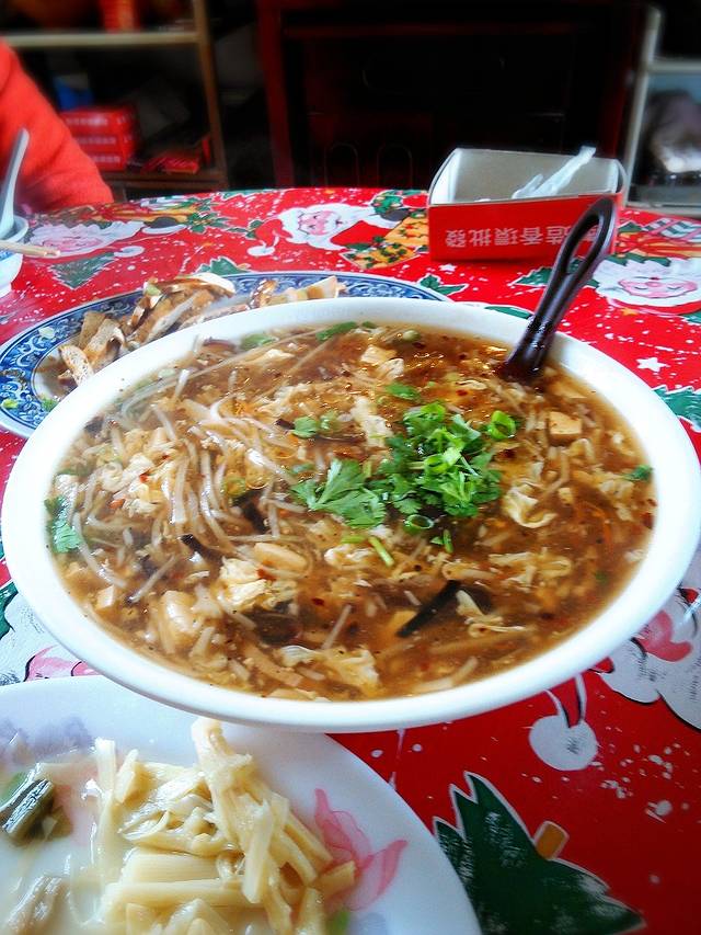 去到牛店时外面居然还有人在排队,不过等的时间不算长,很快就轮到我们进去点面。既然来吃就吃吃特别的,我点的是最贵的套餐牛肉面,端上来居然还是盘子托着几个碗,店员特别和我讲解了几种吃法。讲完离开后,妈妈们说怪不得我的面最贵啊,连吃都有人讲解。