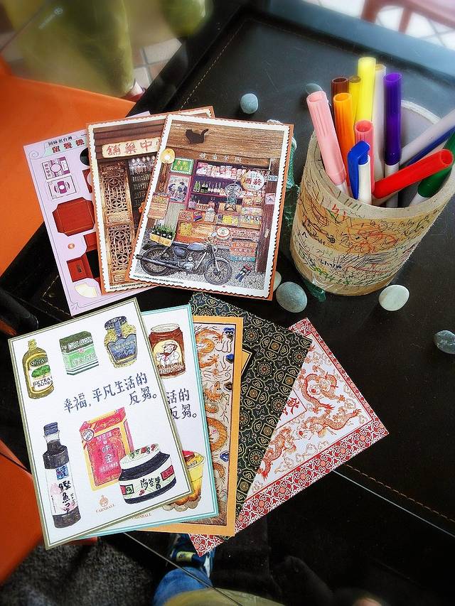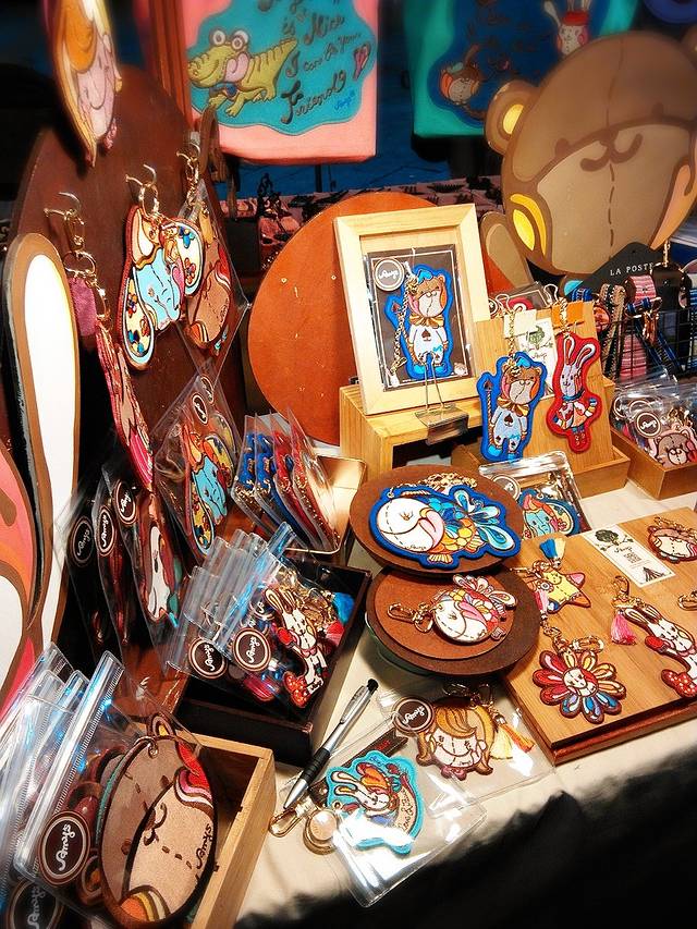因为是周末,附近红楼外边的创意市集都开了,我们在第一家店就把持不住了,线绣的挂件十分可爱,在逛完所有市集东西和红楼后,我和同学各自买了好些张明信片,及两个可爱的钥匙扣,上边店家还帮我们敲了名字,独一无二~