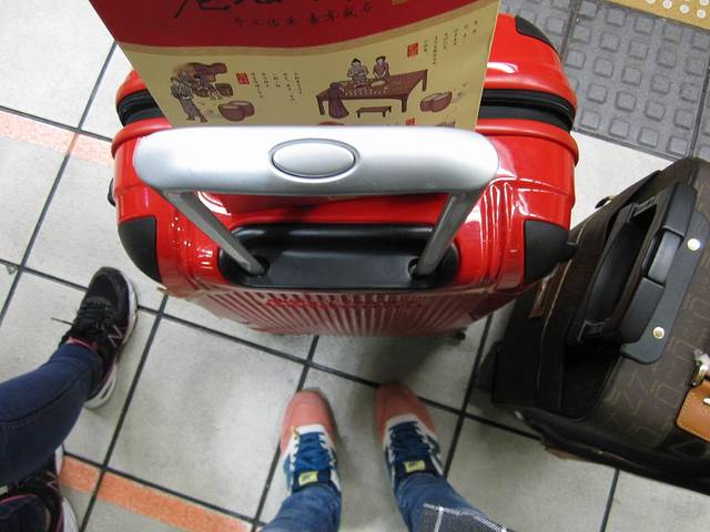 找到最穷逼的春秋航空开始排队,我妈的行李非常郁闷的超重了,就是我妈非要一个行李箱和一个大手提袋,结果工作人员说要加在一起称重算,妈妈无语去办理超重费用,花了近两百块人民币。在这我发现了一个诀窍,若是背双肩包,只是单独托运行李箱,就算提着一点吃的,背包都不会和行李箱加在一起算重量。因为我同学和她妈妈的背包,就没要求拿下来和箱子一同承重,省了不少钱。