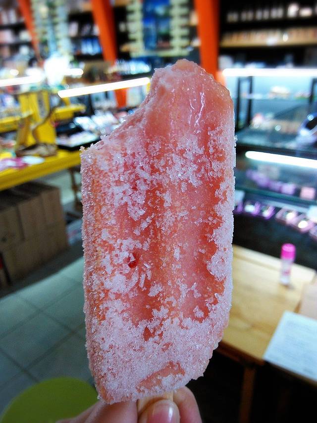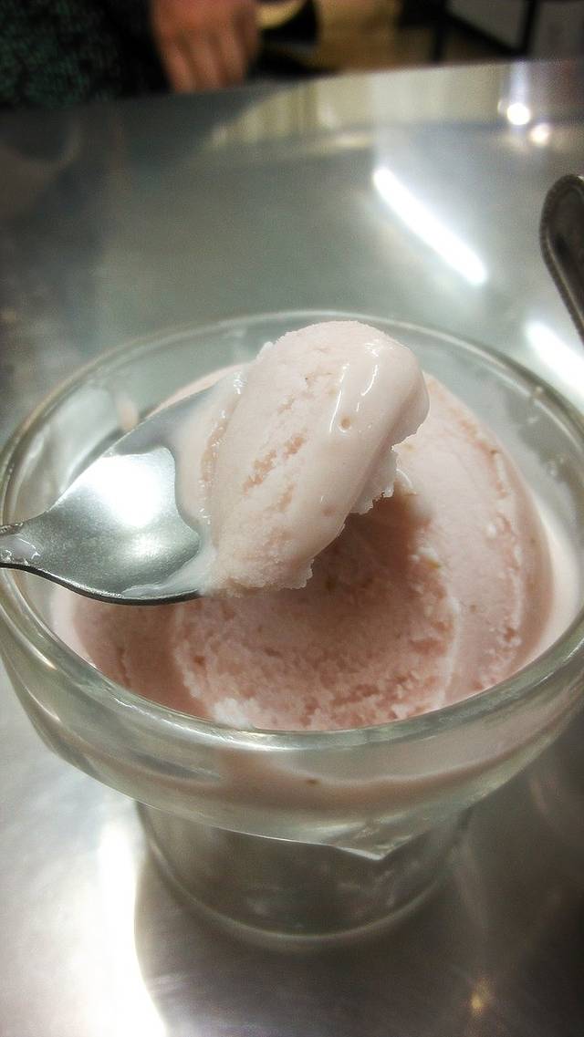 七拐八拐跟着朝域,我们在一条巷子里看到了这家雪王冰淇淋店,装修十分简单和朴实,里边的老奶奶亲切问我们要什么口味的,因为已经在糖厂吃过了几种猎奇口味,我犹豫了一下选择了当季限定的草莓味,同学选择了芋头味,朝域是红豆味。三个冰淇淋摆上来时,看起来不是特别鲜艳颜色的那种,但当我舀起一口放进嘴中,浓郁的草莓香气和适当的甜味在口中融化,真的很纯很好吃~比糖厂的冰淇淋还要好吃!后悔自己吃太多,不能再多吃几个冰淇淋。