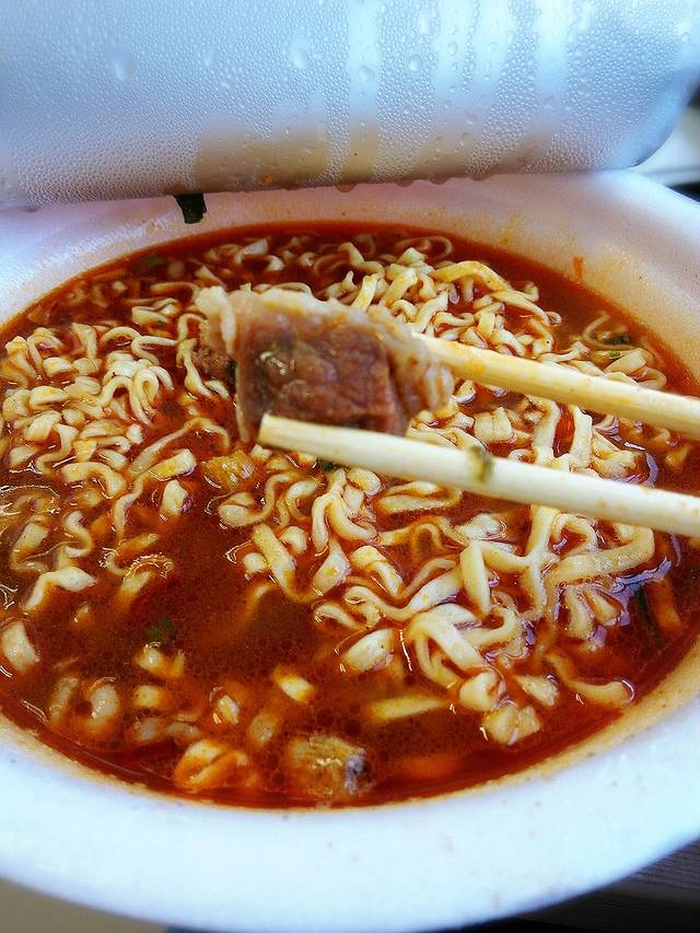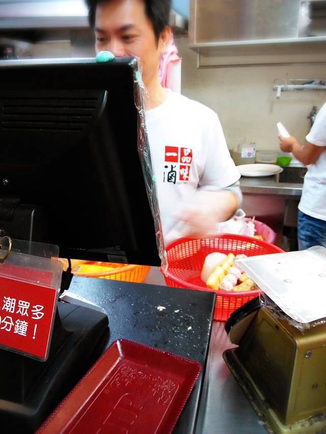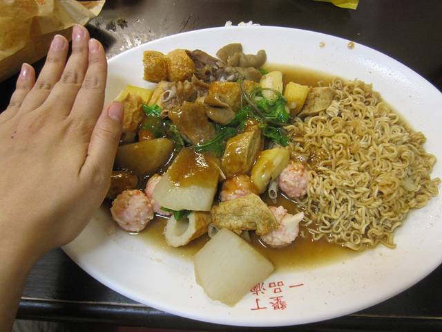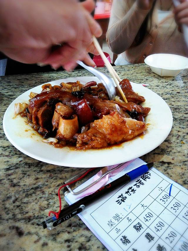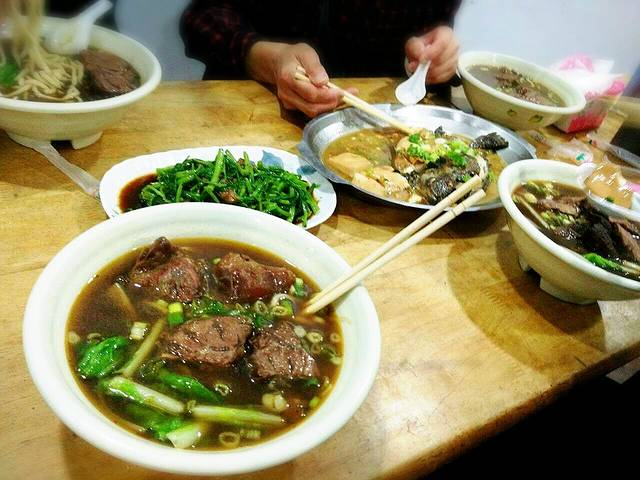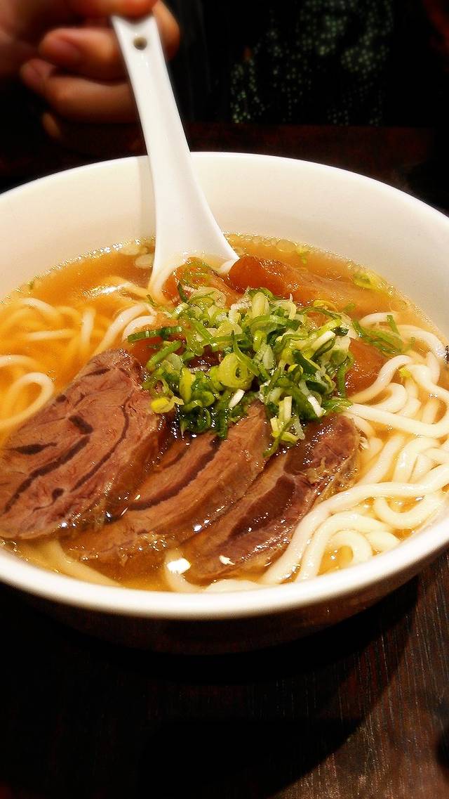 她来的时候我们在屈臣氏买得正开心,闻到了她给我们特意买来的有名盐酥鸡,早就饿肚子的同学妈妈终于有东西吃垫胃了。东西买得差不多后,朝域领着我们到了有名的牛店吃牛肉面,来到台湾不吃吃正宗牛肉面可说不过去了,就像到了上海不吃小笼包、生煎一样。