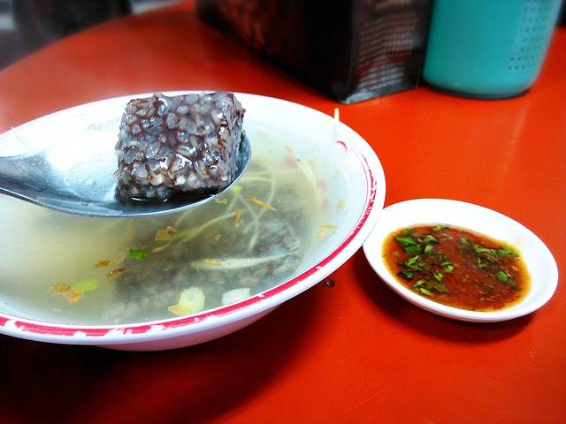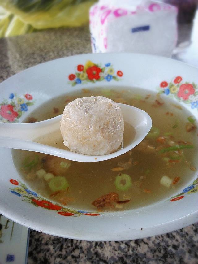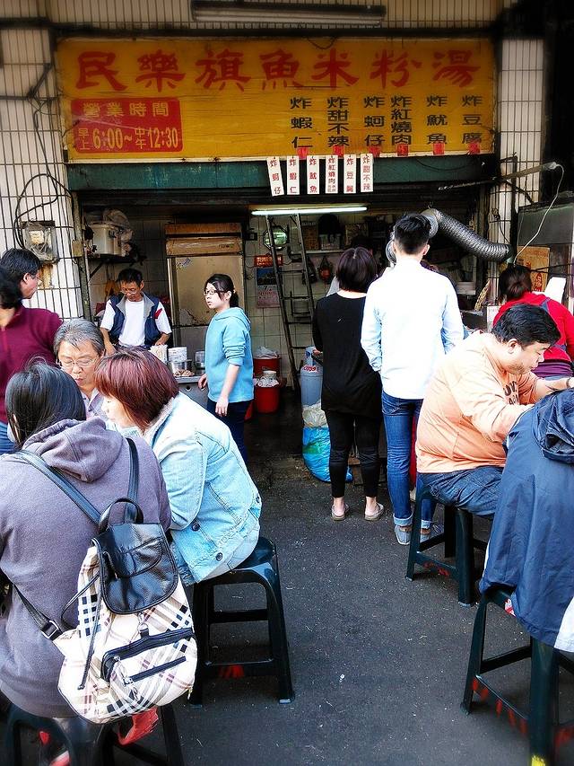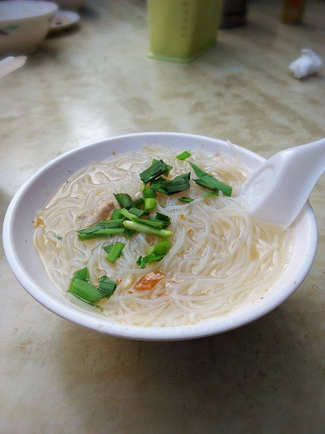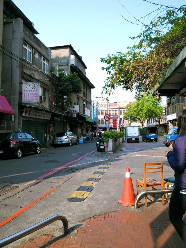 阳光明媚来到无人街道,上午台北街头的店铺都还没开门,看看四周的景色,真的很台湾气氛,朝域领我们到了一家据说不错的旗鱼米粉汤店,一人点了一份米粉汤,又点了甜不辣、红烧肉和虾仁,用这些炸物配着汤喝,和一群当地台湾人拼桌吃早饭,挺有意思~