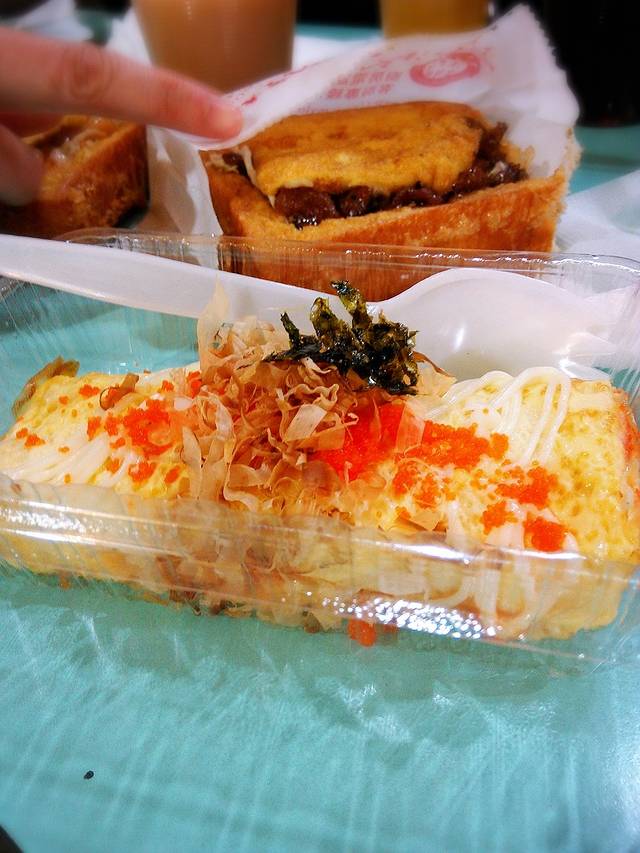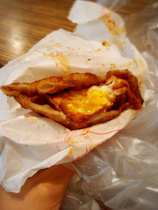 鲨鱼店的早点眼花缭乱,第一眼我就看上了炸鸡餐的特别版,只有这家店才提供的套餐,立刻决定就是它了!同学点的是什么名字不记得了,不过有烟熏鱼的酱,味道很浓郁还不错~