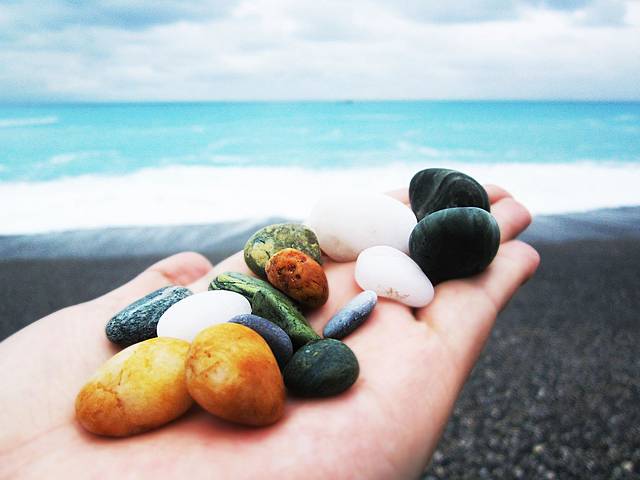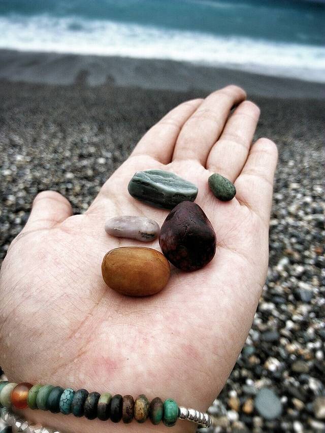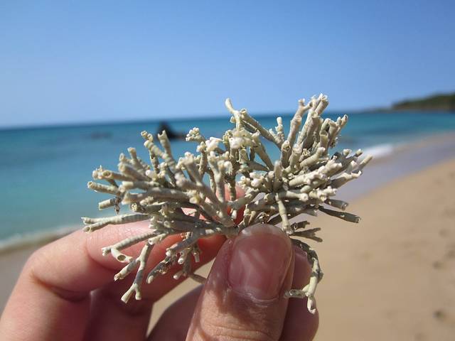 不会游泳的我只要踩踩海浪就十分心满意足了,看到很多飘在沙滩上的珊瑚和贝壳,我们被吸引得都开始边走边捡,捡了不少玩得过足了瘾,才骑车继续往回赶。