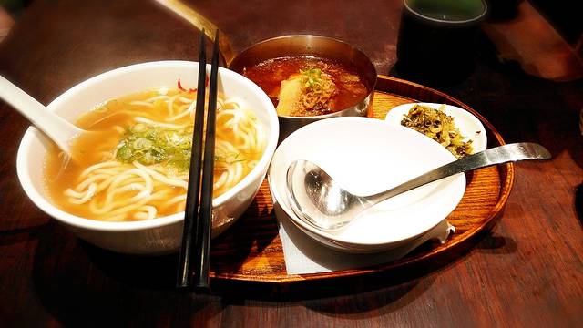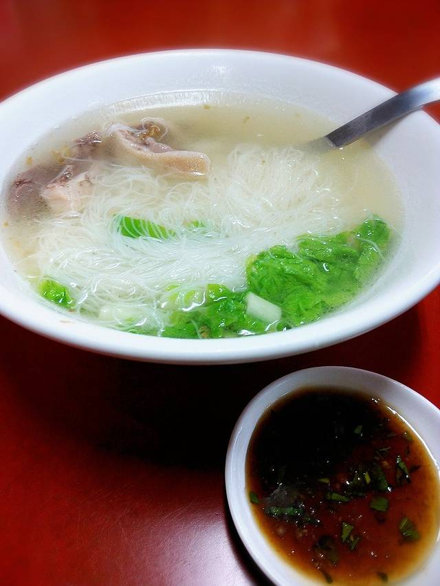 牛肉面的汤头很鲜,牛肉的部分也卤得很好,吃在嘴巴里鲜嫩多汁又入味,还一点都不塞牙。调料方面这家店的辣酱有中等辣和特辣的选择,在台湾这种地方能吃到真的很辣的辣椒酱,真是挺特别的。虽然价格确实有点贵,不过值得推荐!