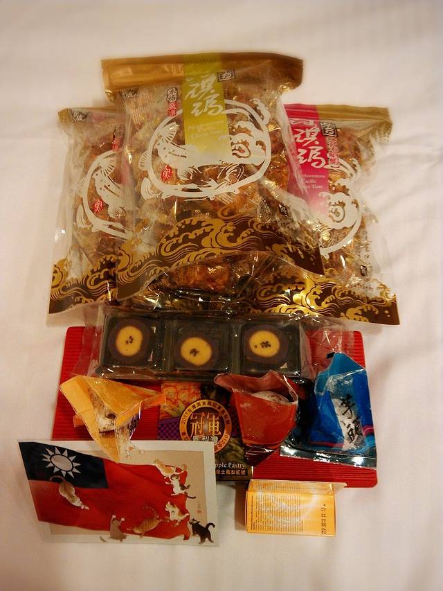 而且,在提着一大袋东西走的时候,我发现我的三日卡找不到了,不知道什么时候给弄丢的,只能到711又去买了一张充值的交通卡。又累又渴,在等车的时候我还把饼掏出来吃了一块,老婆饼味道挺赞,里边的馅料不甜不腻,吃起来不错,这让我对没试吃的凤梨酥也有了几份信心。