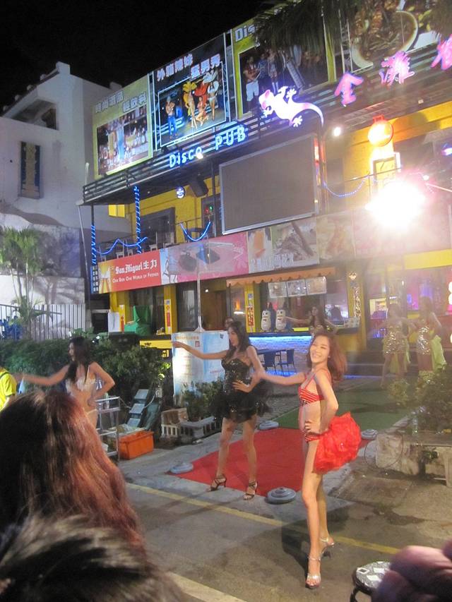 吃完牛肉面我们的战斗力就被终结了,但又不甘心住在垦丁大街却不吃吃什么,和同学再次约说去外面逛逛,抱着饱饱的肚子在一家家诱人的摊位前逛,无奈却吃不下任何的东西。心情复杂又绝望的我,顺路还看到一家店的人妖招揽客人的室外表演,香气逼人,这些比女人还女人的人妖,真是一副好身材,我们可是在几层人的包围下才拍到的照片。