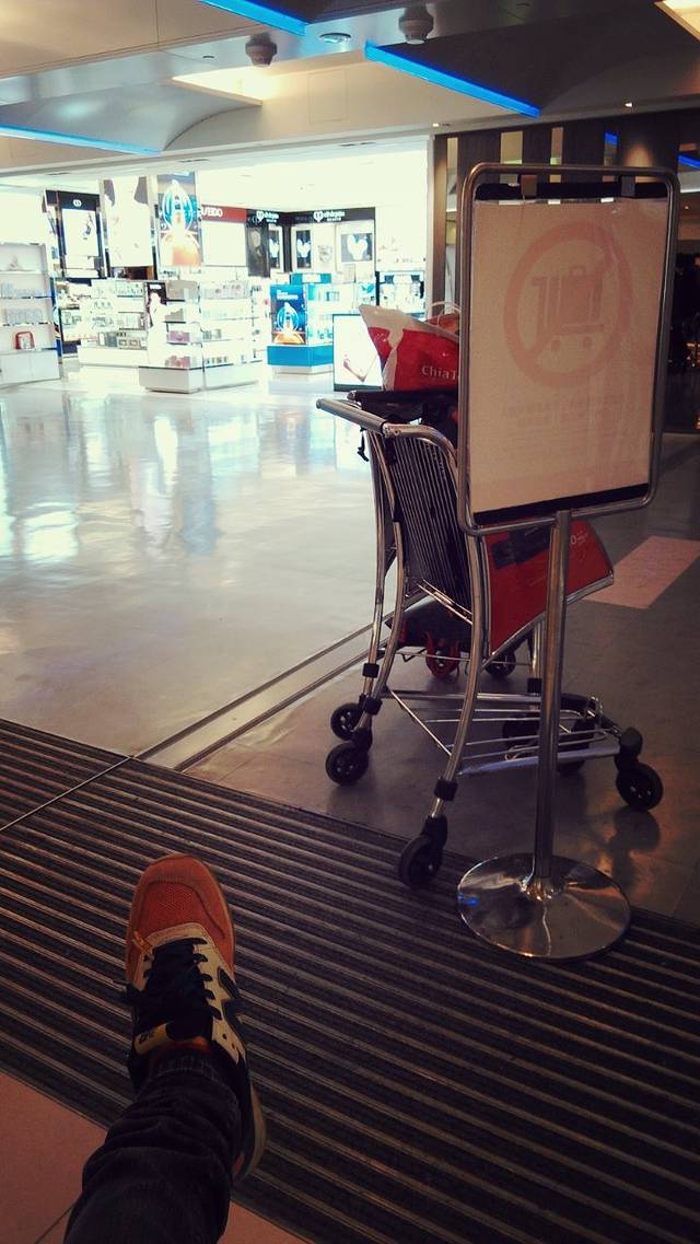 繁复的检查排队过关,我们进入了机场里边,看到不少的免税店,不过价格优惠程度并没有实惠多少,带着想花钱的心进去的我,最后啥东西都没有买,反倒同学进去把她剩下的台币都花了个精光。