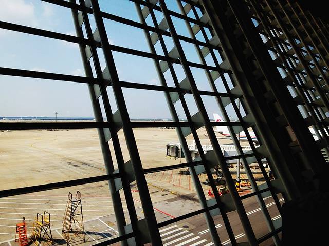明明是中午的飞机,一早六点就被同学电话吵醒,简直不是人!她们六点多火车到达上海,居然直接电话骚扰我,可恶!昏昏沉沉磨蹭到八点多出门,迎着大太阳坐了两小时多地铁才来到无比遥远的机场。排队拿好票寄存好行李,我们进了机场里边,各种免税店挤满了人,因为飞机时间快到了,也没在里边逛逛。
