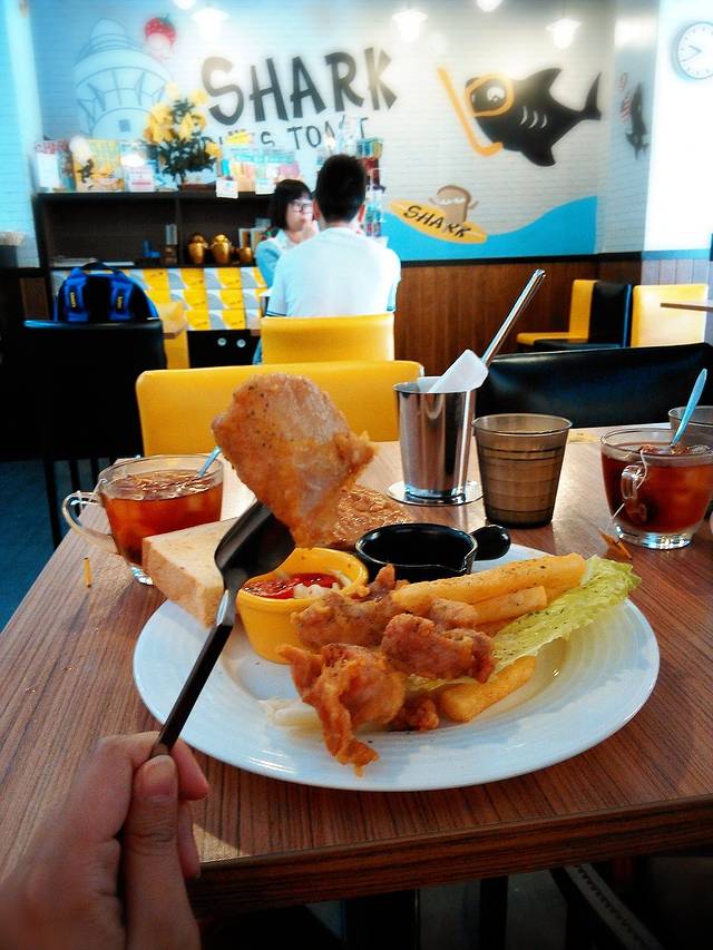 直到看见鲨鱼咬吐司的店,我和同学说起这一家攻略推荐说很好吃,我们不如吃个甜点看看,说不定能吃完?