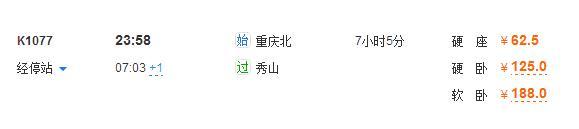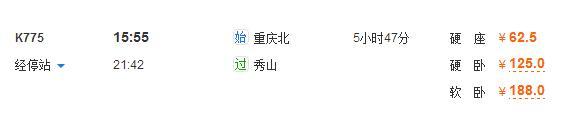 背景资料介绍完了,开始介绍行程。D1下午,重庆北站南广场出发,K775前往秀山。小伙伴要是下午出发,就一定米K775,因为另外一般要早点,要是始发站,但是,经常晚点。