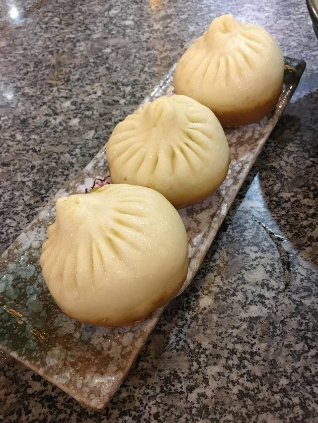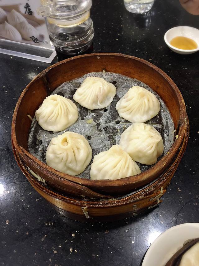 不甘心的我们好不容易挤进城隍庙的小吃街里,却被各种限流的路线指得眼花缭乱,生生绕了好几圈。看到进入豫园还得排更长的队,人流络绎不断,我们最终还是放弃了这个行程,随便找了个地方歇脚。我们误打误撞走进了有名的南翔馒头店,谁知道这里不单单一如既往地要排队等位,还有人均最低消费。我们三个穷孩子去了最便宜的一个厅,人均50元,吃了旅游这么多天最贵的一顿包子。