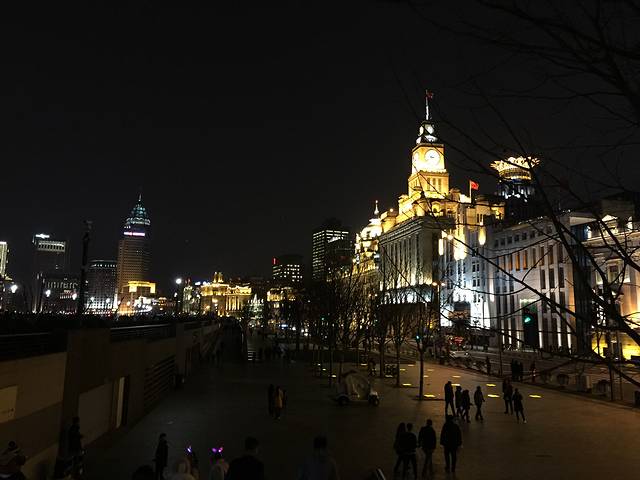去到外滩观景台的时候人不是特别多,我们很容易就找到几个拍照的好位置了,比起早上的人山人海,晚上的外滩更适合拍照。而且晚上的外滩确实特别美,我们所在的老城区与对岸的浦东新区互相辉映,东方明珠也换上了过年的新衣变得红红火火,喜欢拍照的朋友千万不能错过这里的景色。需要提醒的是,晚上的外滩确实比较冷,风大,冬天去的朋友最好戴好手袜,我们几个每次拍完一张照片,手都变得像冰块似的,暖宝宝是必备物品,强烈建议带上。