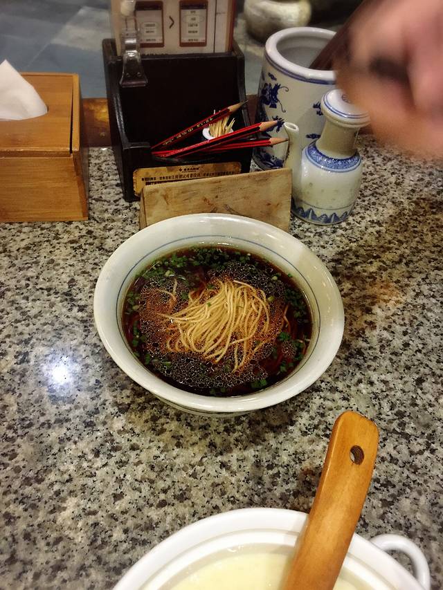 阳春面(古装戏的招牌菜,像是冲淡了的酱油泡面?还不错)
