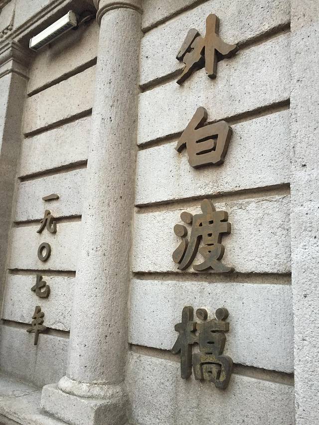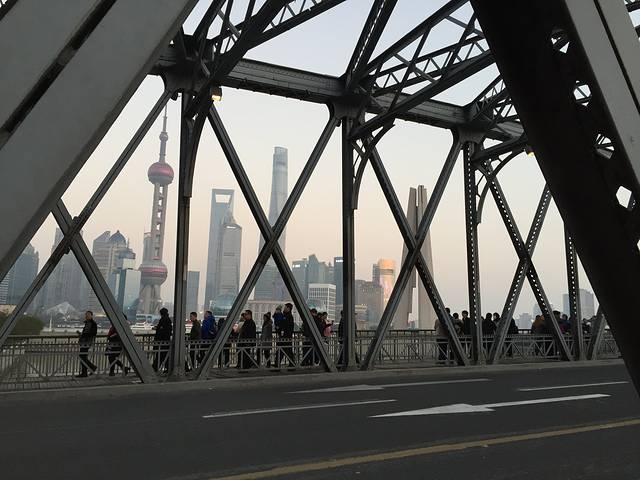 去过了缩小的外白渡桥,我们来到了真的外白渡桥。这时,天已经开始黑了,江边越来越冷,但是还是有不少人在这里拍照,看来过了年三十以后,来旅游的人也多了起来。