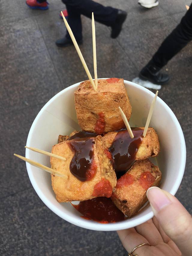 为了应一下景,我们勉强买了个并不臭的臭豆腐边吃边逛,还喝了传说中的阿姨奶茶(然而并不好喝),终于受不住人群连忙溜了。