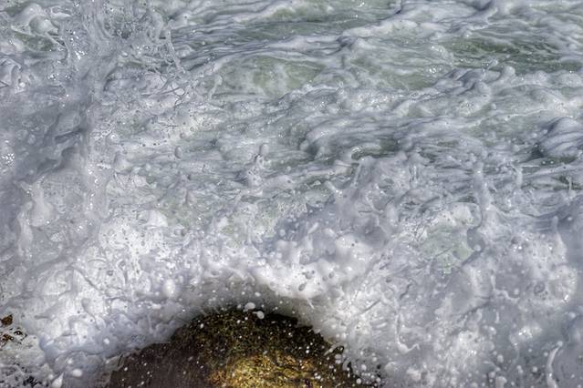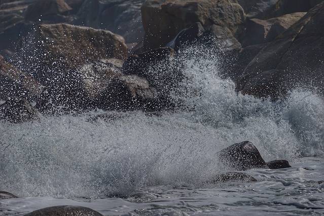 海浪汹涌的拍打在岩石上,瞬间就化为粉碎的水花,看上去就和流动的牛奶一样。