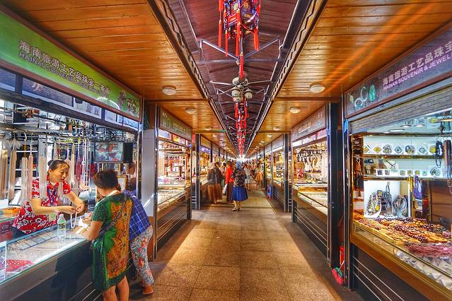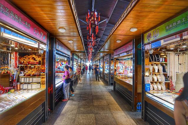 步行街中间还搞了一排小木屋,专卖海南特色工艺品。
