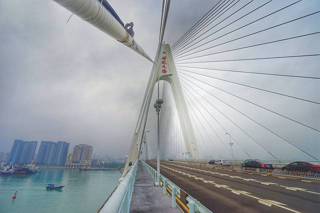 晚上睡得太晚,早上差点没起来。不过今天算是白起了,要知道我能早起看次日出可是非常罕见的,海南的老天爷居然如此对我,真是不开眼。世纪大桥的塔楼早上根本不开门,我是从汽车道边上走上桥的,很不安全,大家不要学我。