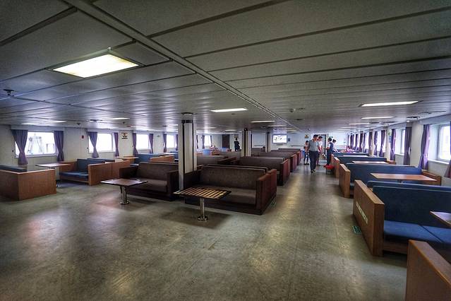 自驾车坐轮渡之前就一点注意事项,吃饱饭,因为全程4个小时,船上不卖饭,而且物价是下面的一倍。加油就算了,海南岛没有过路费,油费加1块钱,还是上岛加油给海南岛做点贡献吧。