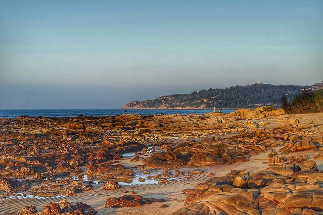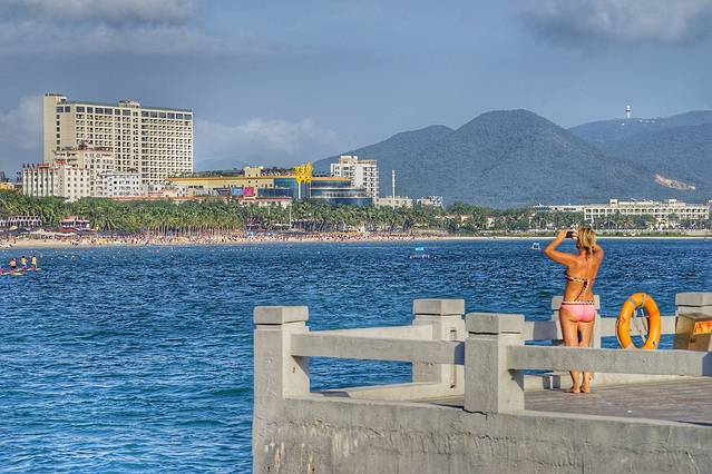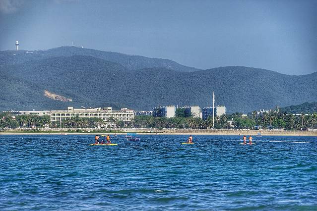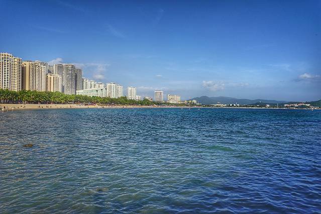 在这里,可以从海中眺望大东海的美丽沙滩,湛蓝的海水,美丽的沙滩,热闹的人群,再想起北方那寒冷的天气,还有醇厚的雾霾,怎能不让人思乡情更怯啊。