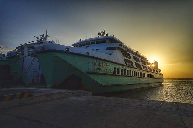 从渡口的这头到那头3分钟的时间,据说这里本来计划要建一座跨海大桥,但是后来一直没有动静。