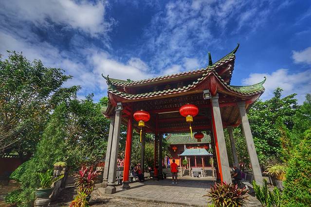文南老街附近的这座文昌孔庙值得一看,这里不但是海南省保存得最完整的古建筑群,被誉为海南第一庙,而且也是中国惟一不朝南开大门的孔庙。