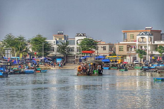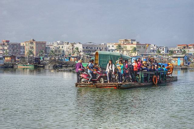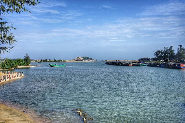 和乐镇港北的这片小海是中国最大的泻湖内海,面积近50平方公里,海产丰富,被誉为鱼米之乡。海南四大名菜中最好吃的和乐蟹和万宁四珍中的港北对虾、后安鲻鱼都盛产于此。可以从盐墩村这里坐渡船过去和乐镇,这也是当地人的交通工具,很便宜,一个人坐一次只要一块钱。