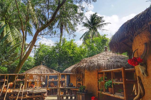 早起离开三亚,路过椰田古寨,这里虽说是旅行团景点,但门票只要10块钱,可以看看。
