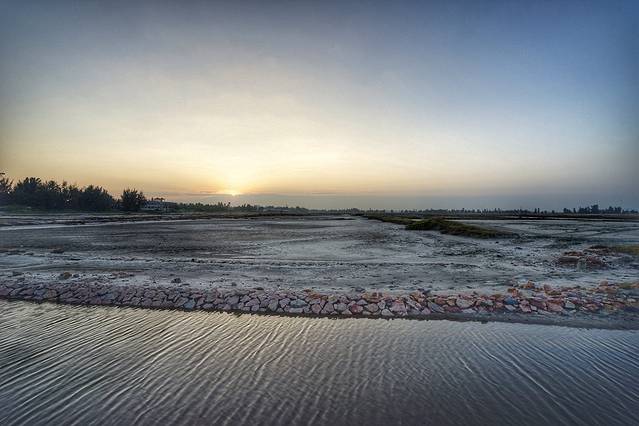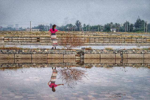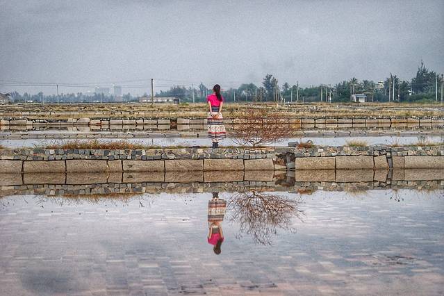 此行重点推荐的景点,乐东莺歌海盐场。盐场面临大海,背靠尖峰岭林区,是一片30多平方公里的滩涂地带。这里是海南岛最大的海盐场,在华南地区也是首屈一指。这里一块块方形的盐池连绵不断,渠道纵横有序,一眼望不到边际。白天和傍晚来真是有天壤之别,盐池在夕阳的映照下银光闪闪,景象十分美丽。