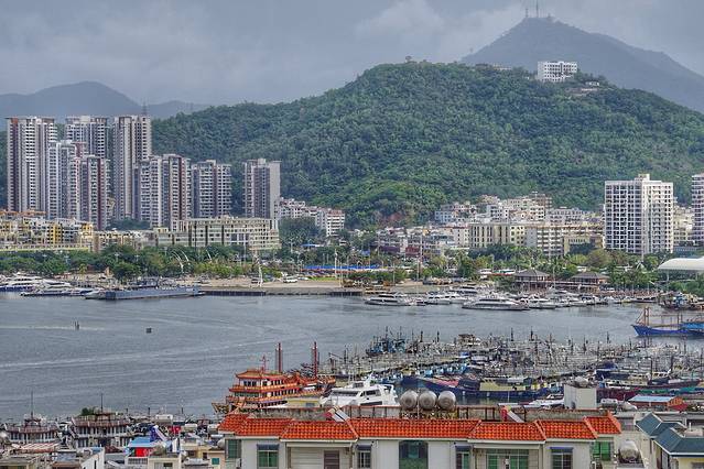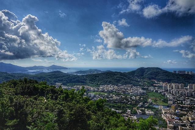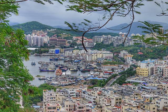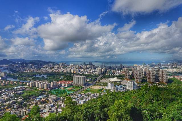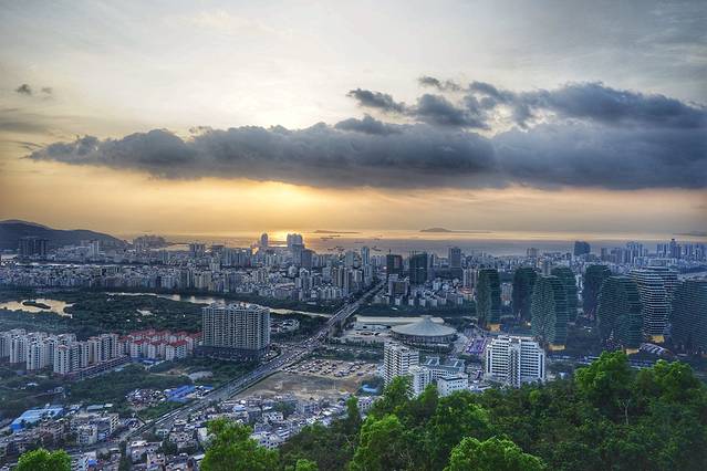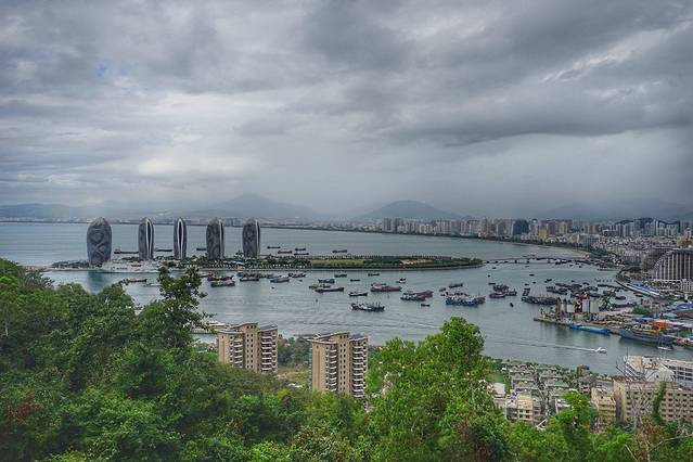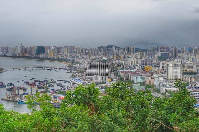同样是看三亚市和三亚湾的全景,但这里和鹿回头观海亭的角度是完全不同的。