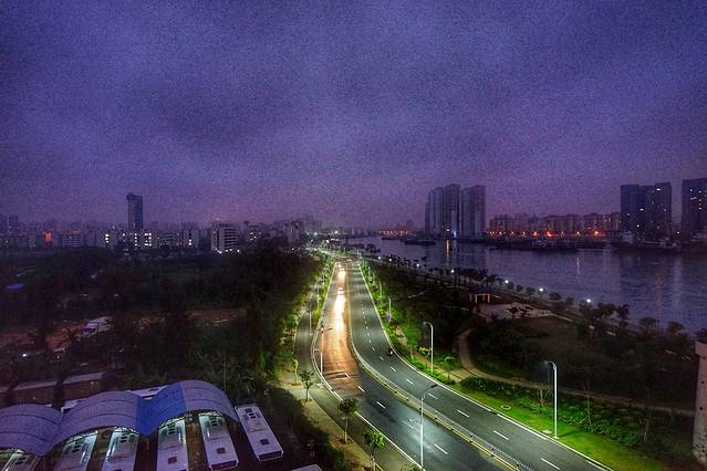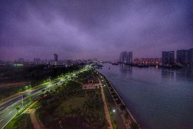 没看到日出,所以也不知道世纪大桥上面看日出好不好,我觉得这个方向朝东,应该可以看到太阳从海甸河上升起,海口市在朝阳的照耀下一片金黄,也不知道是不是这样的景象,未能如愿。