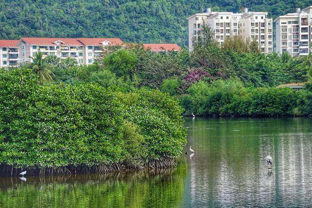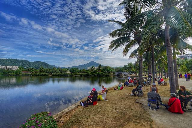 白鹭公园就在临春河旁边,其实也属于市区的范围,但是又处于市区的边缘,不像三亚湾或大东海那么喧闹,只有少数的本地人在这里休闲,相对来说要安静许多。