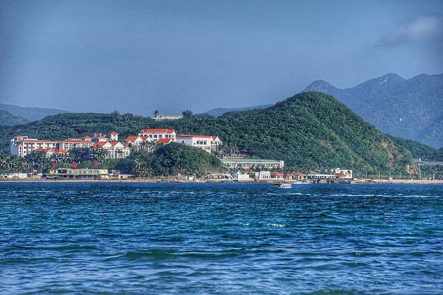 不但三亚湾尽收眼底,大东海也能举目远望。而三亚湾和大东海之间的,就是这郁郁葱葱的半山半岛,现在已经开发成综合的高档旅游度假区。