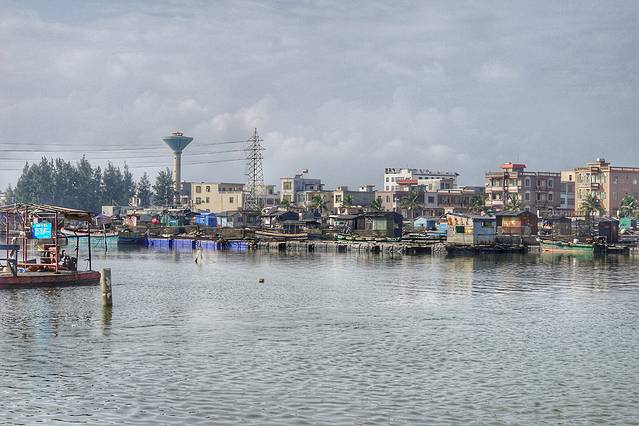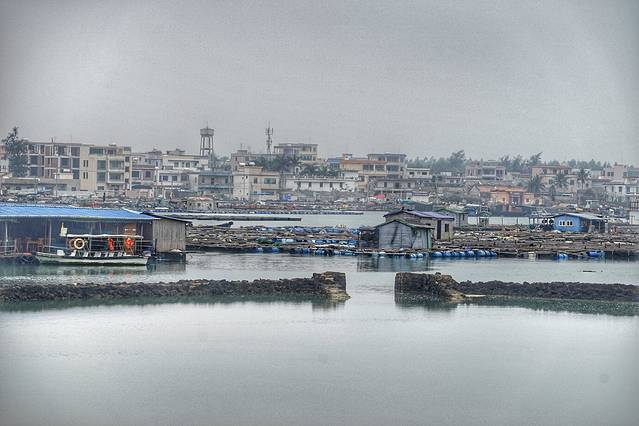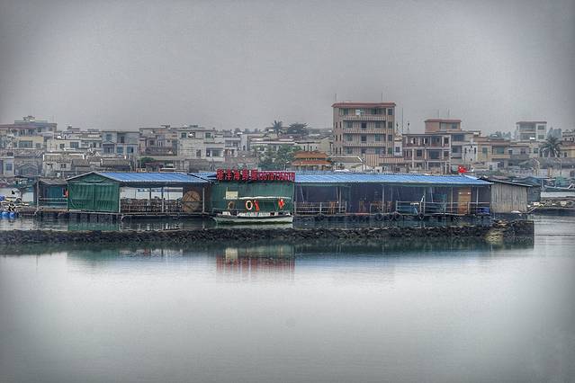 疍家人常年在海上生活,吃住都在船上,过着海上漂的生活,后就找到海边的各处港口作为歇栖地,进而演变成鱼排养殖和海上房屋的形式。