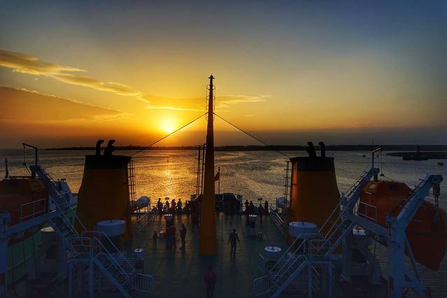 所以说来得早不如来得巧,能正好赶上在轮渡上看日落,运气也还算是不错的。