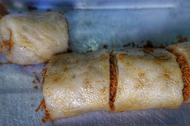 吃不饱也没关系,第一市场还有很多小吃,绝对饿不着。这种椰子糕是用椰肉和糯米做的,挺好吃。