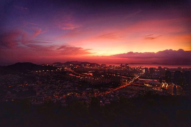 此行重点推荐的景点,三亚临春岭。站在临春岭的瞭望塔顶,整个三亚湾和三亚市就扑面而来。这里不但白天景色美,而且是看日落和夜景的好地方。很多人都觉得三亚只是在摄影师的照片里面才那么美,其实不然,只要你来到临春岭,等到日落时分,你就会知道那样的美景并不只是在PS过的照片了,而就在你的眼前。