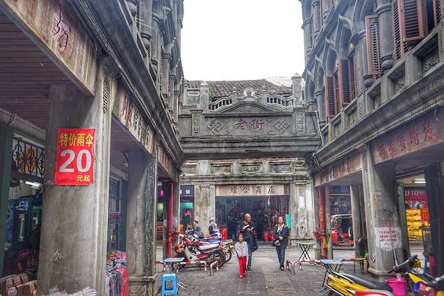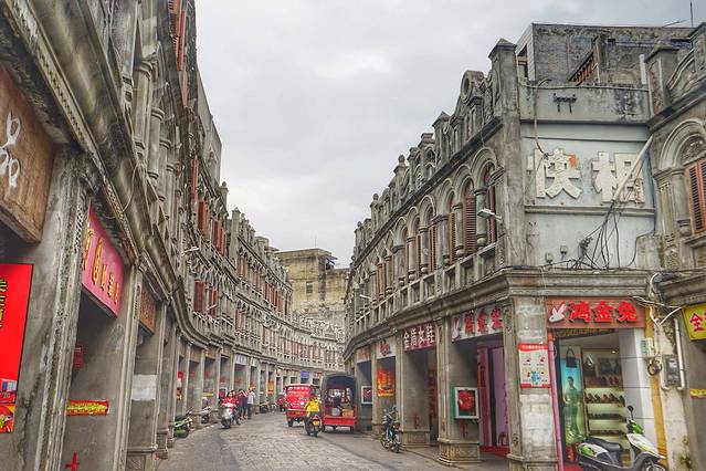 文南老街就在文昌老城中心,南北走向,沿文昌河而建,蜿蜒百米有余,民国二十年初具规模,是有一片规模很大的中西合璧式南洋风格的骑楼街道。