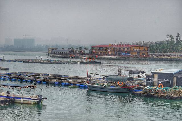 在永庆寺外的东水港,停泊着一些疍家渔排。