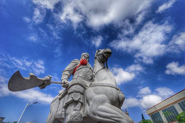 大殿后面的桃园里塑有刘、关、张桃园三结义雕塑,这当然是新修的,我只能说,这雕塑。。。。。。很呆萌。