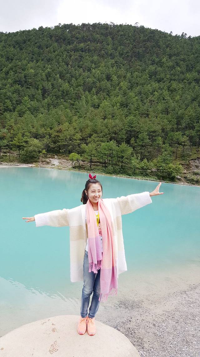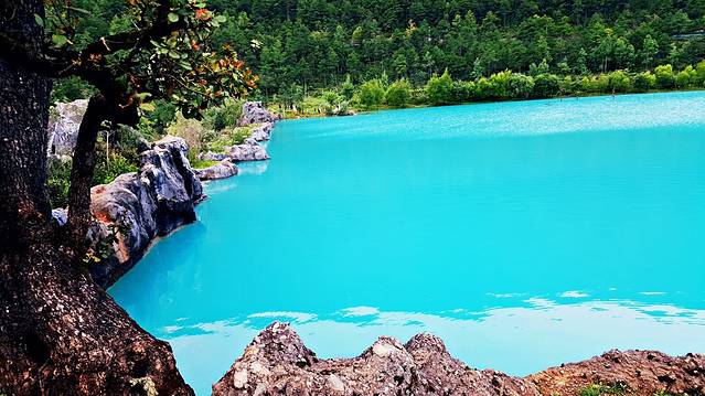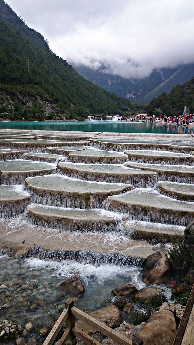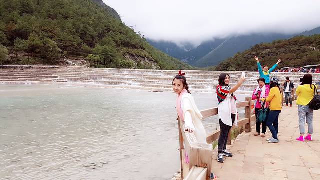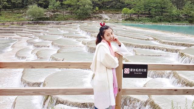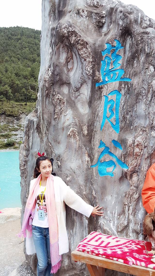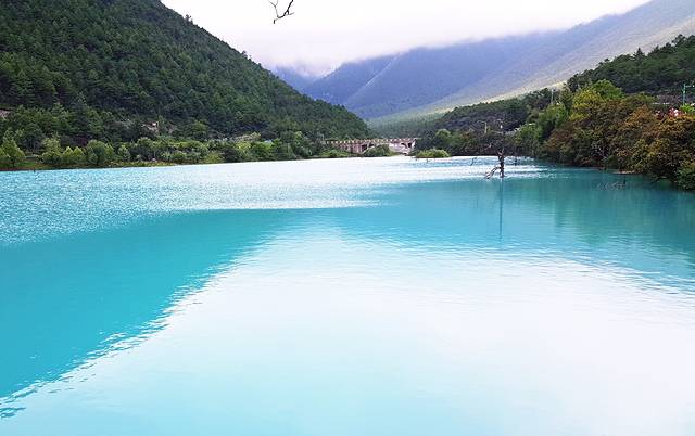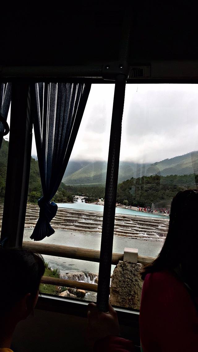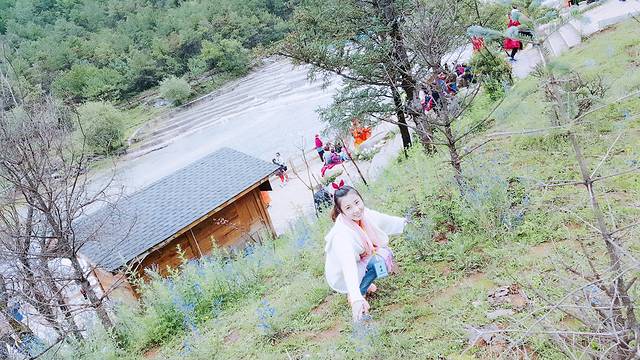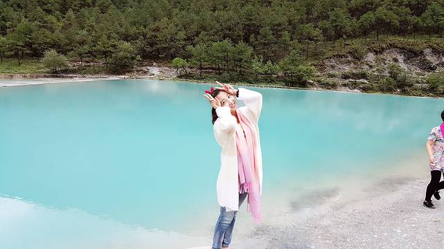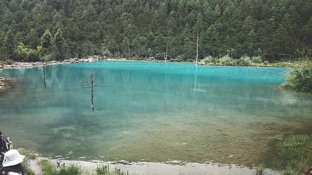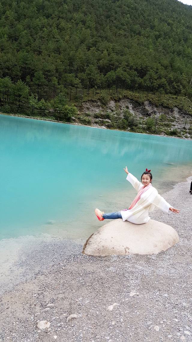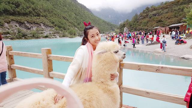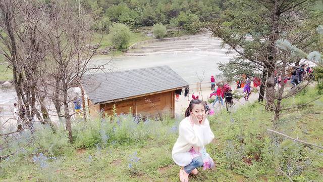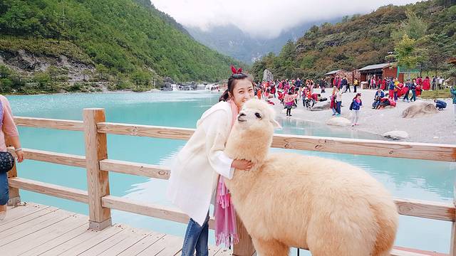 进入景区之后,要坐一段时间摆渡车.先看到一抹蓝,就是蓝月谷.晴天时水的颜色是蓝色,但因为湖底的泥巴是白色的,下雨时水会变成白色,所以又叫白水河。