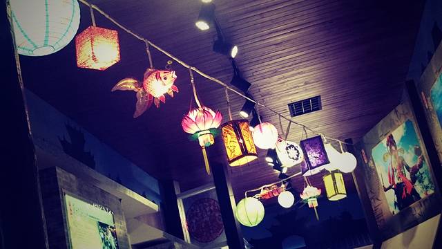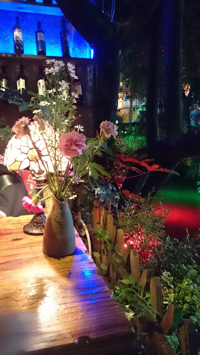 挑了个色彩斑斓的地方坐一坐,酒吧驻场的歌手声音还不错,让我在吵吵闹闹中安静的发会呆.