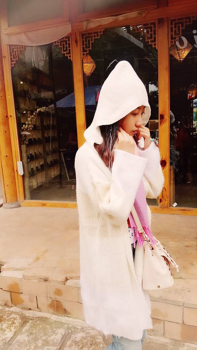 在丽江多余的都被邮回家了,天气太凉,所以硬让我穿了一双不搭调的小袜子.